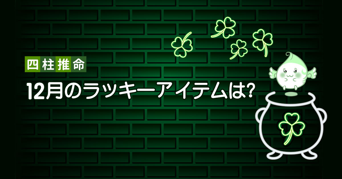 四柱推命は、古代中国で生まれ、多くの統計に 裏付けられた最も的中率の高い占術です。 四柱推命学のベースとなる陰陽五行説は、 中国の陰陽思想と五行思想が 組み合わさったものです。 特徴としては、 干支歴の「十干」と「十二支」を使用し、 生まれた年月日時を 八字(四つの柱)に置き換え、 その人の持って生まれた 運命を解いていきます。 日本には、江戸時代に中国から伝わり、 四柱推命という名前がつけられました。 特に日本・韓国・台湾などでは、 学者や占い師によって時代に合わせて、 発展し続けています。 フォーステラーは、120万人以上の 四柱推命のデータをプログラムで分析し、 その結果に基づいた占いサービスを提供しています。 生年月日を簡単に入力して、 今月のあなたのラッキーアイテムを占ってみませんか。 ーーーーーーーーーーーーーーーーーーーーーーーーーーーーーー 十二月は「赤い子(ねずみ)」「丙子の月」です。 「丙子の月」に入ってくる「丙火」と「子水」の五行をもとに、 あなたの四柱推命の命式、大運、 己亥(つちのと・い)年の五行を置き換えて占います。 ※ 四柱推命の己亥年・丙子の月は、 2019年12月9日から2020年1月8日までです。